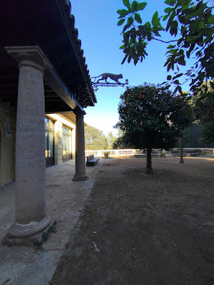 Podem veure l'entrada principal amb els dos gats vigilant l'entrada. Després una esplanada, una font i un local (ara tancat i reformant-lo) entre mig de petits tarongers formen el berenador noucentista.